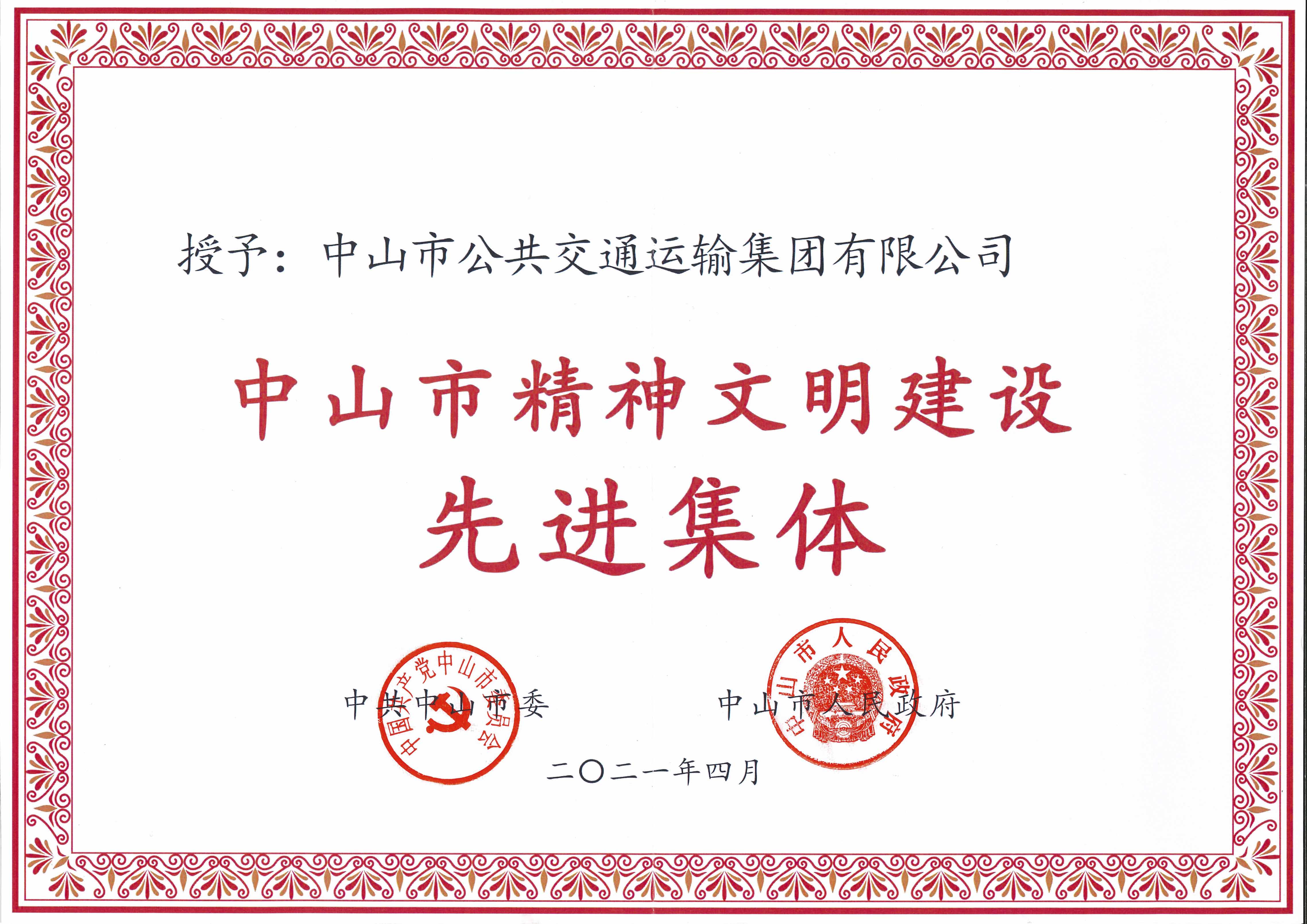 中山市精神文明建设先进集体